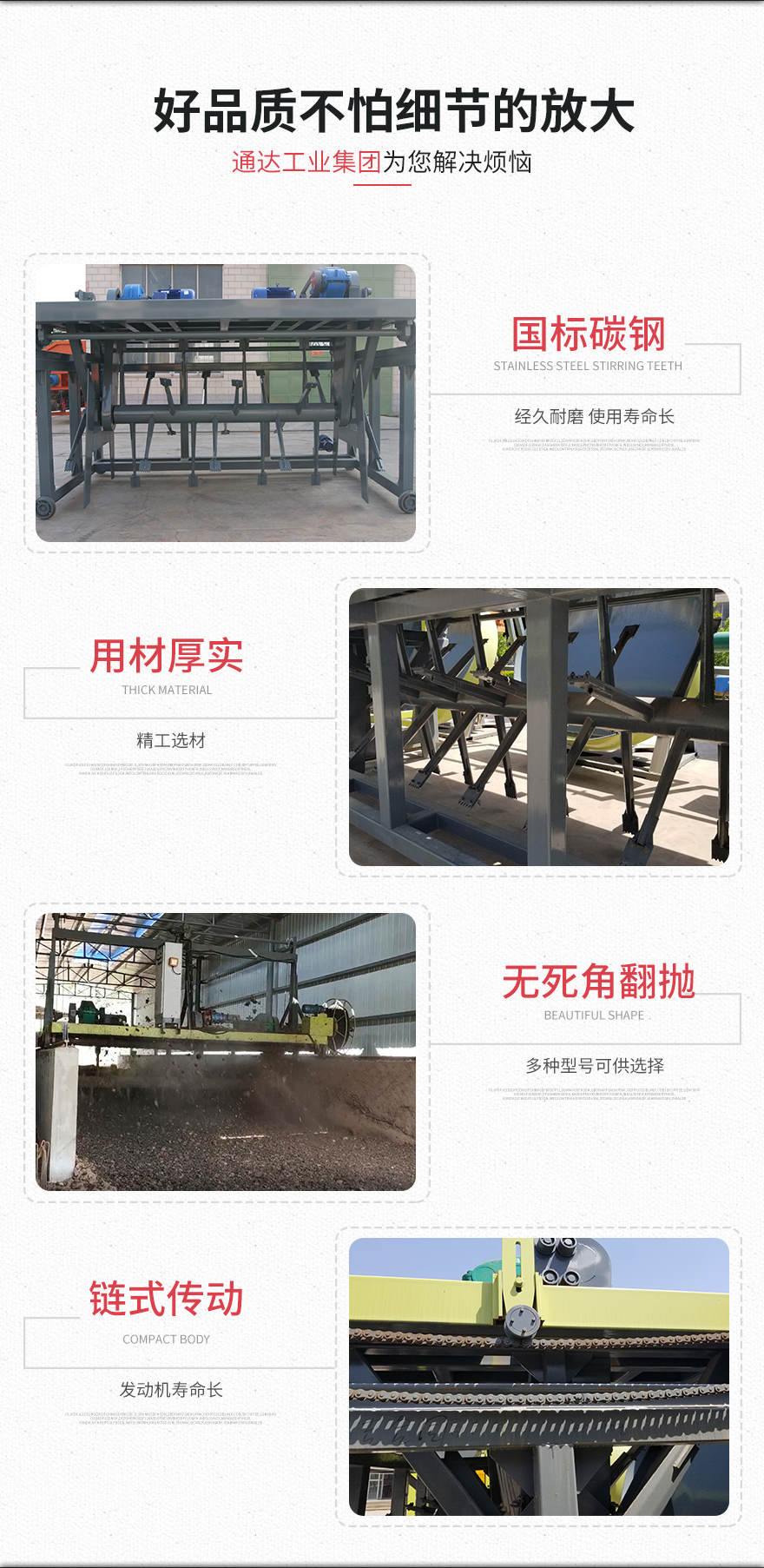 產(chǎn)品簡介:液壓槽式翻拋機(jī)價(jià)格是多少錢?有機(jī)肥槽式翻堆機(jī)廠家通達(dá)工業(yè)集團(tuán)生產(chǎn)4米5米6米等槽式有機(jī)肥翻拋機(jī)規(guī)格,可用于畜禽糞便、污泥垃圾、糖廠濾泥、糟渣餅粕和秸桿鋸屑等有機(jī)廢棄物的翻堆發(fā)酵工作,歡迎致電18530928888加工定制.