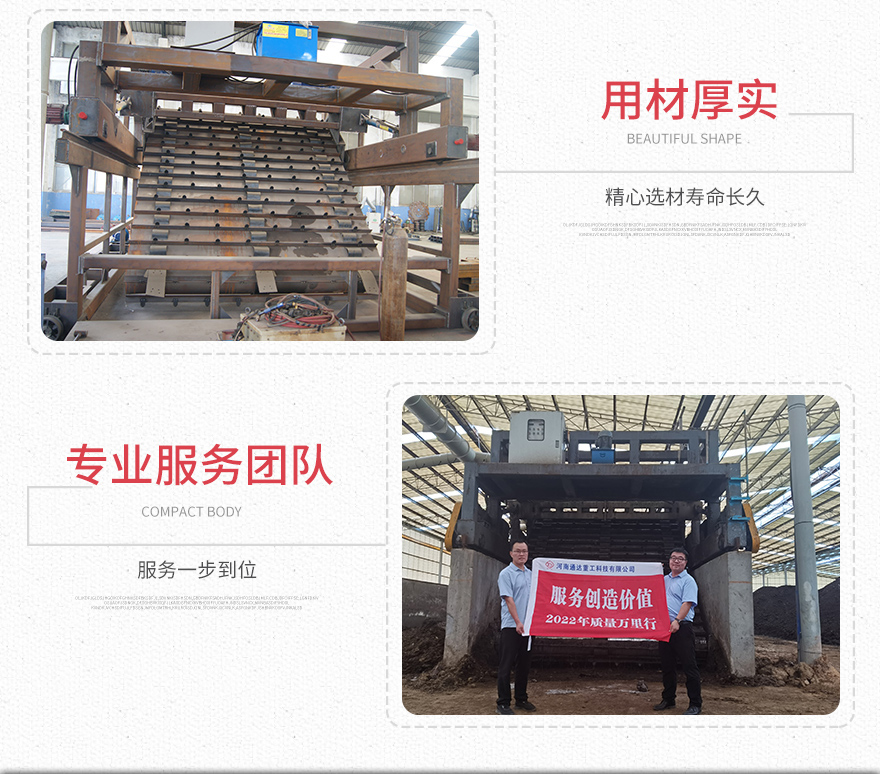 產品簡介:養殖場豬糞牛羊糞鏈板式翻堆機廠家報價多少錢?河南通達工業科技集團有限公司鏈板翻堆機沿發酵槽軌道行走作業,翻拋機在翻拋過程中將發酵物料連續的拋起、散落并產生一定的位移,使物料在池內有規律、等距離的漸進式后移4m,從而形成了一種連續的好氧發酵過程。這種高效率的翻拋作業有利于加快發酵槽內物料發酵腐熟、降低水分和提高發酵后物料的穩定性。